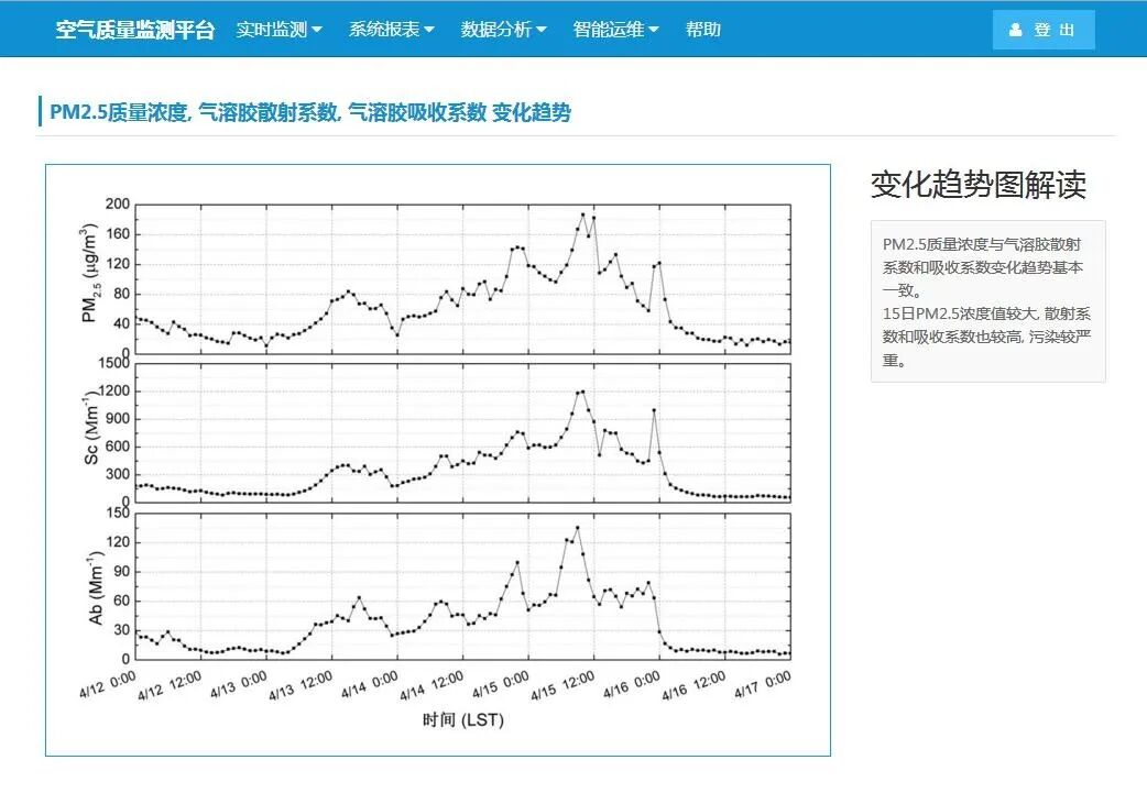 基于超级站监测数据的统计结果,展示空气质量状况,气溶胶的物理组成,化学特性,空间分布等监测结果。