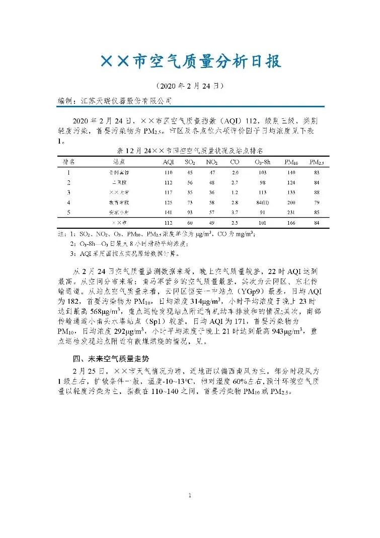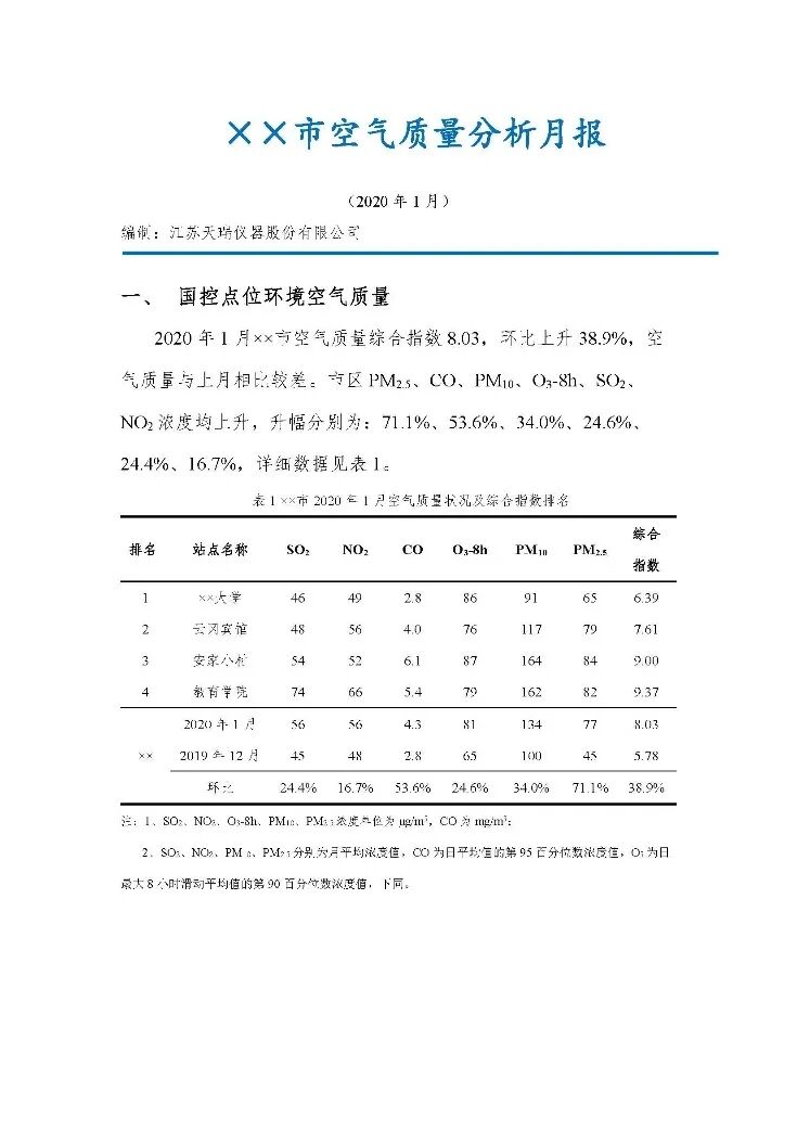 结合监测数据及平台软件分析结果,为环保部门出具日报、周报、月报、污染应急、重大活动保障,为政府的环境管理政策提供支撑。