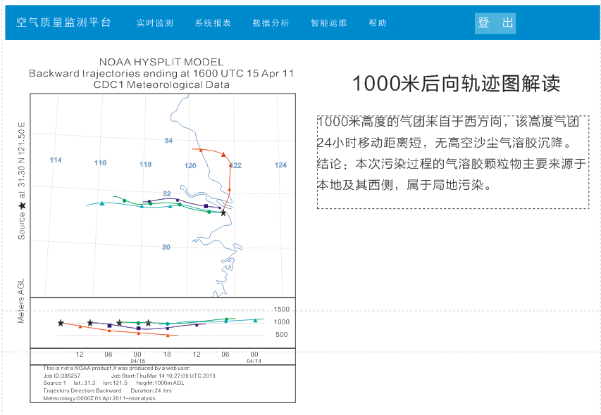 将地基监测的气象数据、空气六参数数据与遥感数据相结合,分析污染物的传输规律、时空演变、对后向轨迹进行解读、分析污染物的来源。