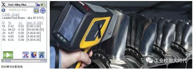 其中的废料分拣和合金辨别利用的就是不同材料的X射线荧光光谱不同,同时设备能够自动进行数据匹配,以找到与该检测对象为匹配的材料型号,如下图所示。