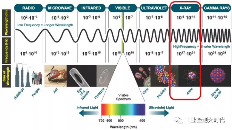 在看XRF之前咱们先简单了解一下X射线,X射线是由于原子中的电子在能量相差悬殊的两个能级之间的跃迁而产生的粒子流,是波长介于紫外线和γ射线之间的电磁波。其波长很短约介于0.01~100埃之间。由德国物理学家W.K.伦琴于1895年发现,故又称伦琴射线。