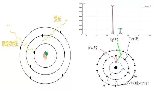 X射线管产生入射X射线(X射线),激发被测样品。受激发的样品中的每一种元素会放射出二次X射线,并且不同的元素所放射出的二次X射线具有特定的能量特性或波长特性。探测系统测量这些放射出来的二次X射线的能量及数量。然后,仪器软件将探测系统所收集到的信息转换成样品中各种元素的种类及含量。