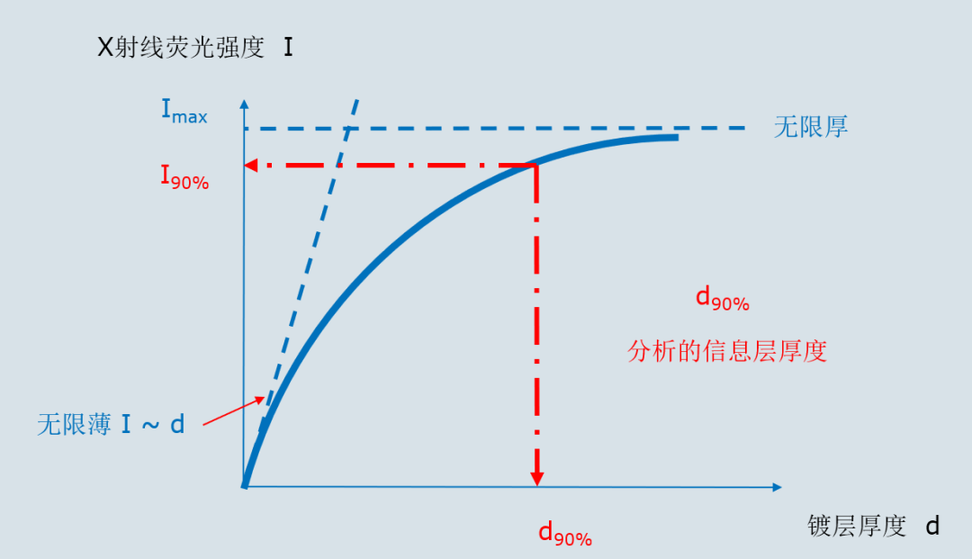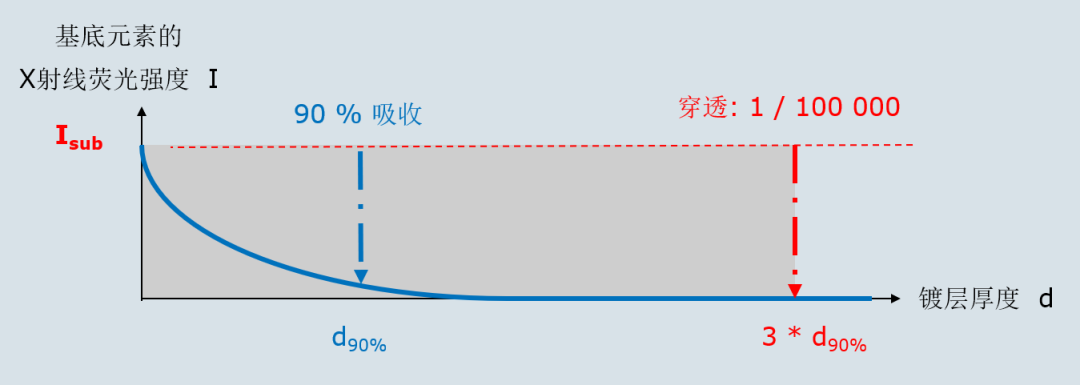 镀层越厚,对基底元素的X射线荧光信号的吸收就越严重 吸收方法可以分析的厚度:3倍的90%吸收的厚度 发射方法适合测量薄镀层,吸收方法适合测量厚镀层